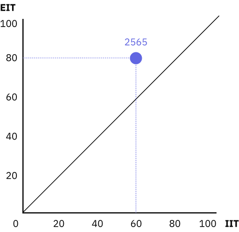 ปี 2565 ได้คะแนน EIT 80 / IIT 60 คะแนน → ห่างกัน 20 คะแนน